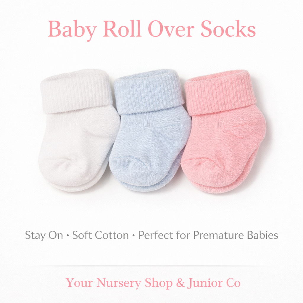 Keep tiny toes warm, secure, and comfortable with our beautifully soft Baby Roll Over Socks, specially designed for premature and newborn babies.