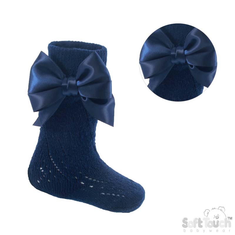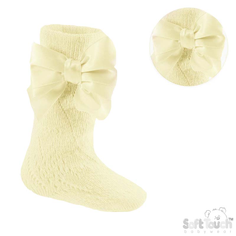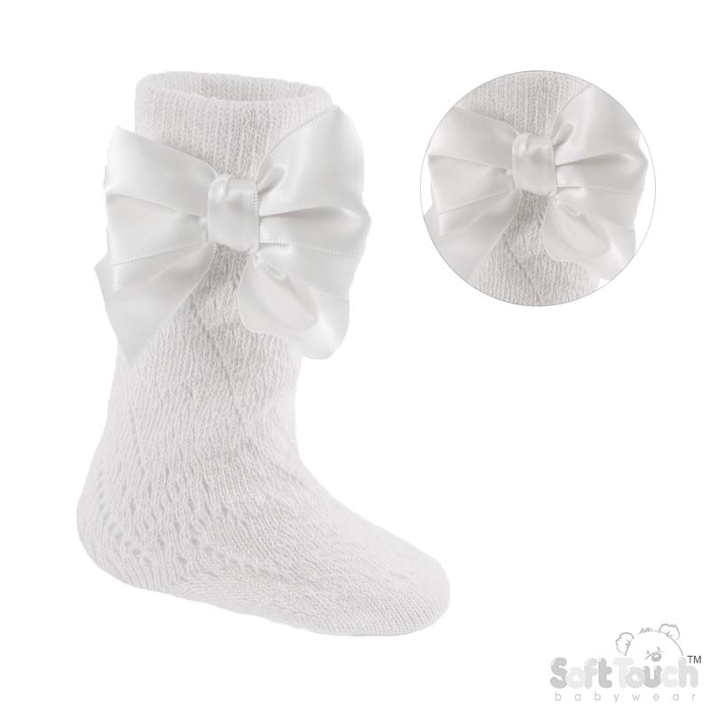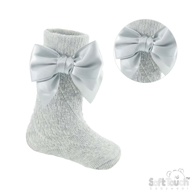Pelerine Bow Socks Add a touch of elegance to your little oneβs outfit with our Pelerine Bow Baby Socks. Designed with comfort and style in mind, these beautifully knitted socks feature a soft textured pattern and a large satin bow, perfect for special occasions or everyday wear.
