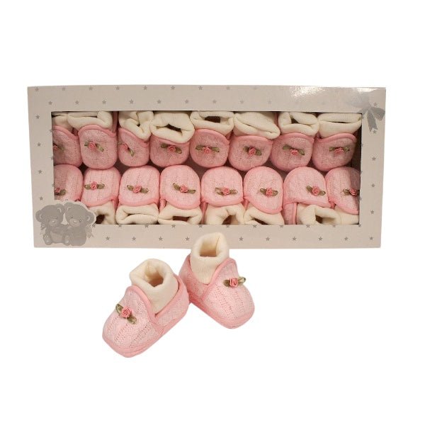 Baby Girls Cotton Booties with Integrated Socks and Rosebud